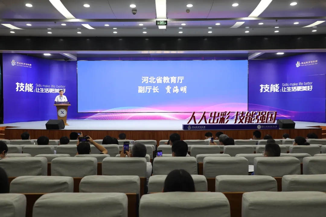 省教育厅副厅长贾海明在启动仪式上致辞,他指出十八大以来,全省职业院校办学水平显著提升,服务经济社会发展能力明显增强。我省有49所中职学校建成国家示范校,11所高职院校获批国家优质校,10所高职院校入选国家“双高计划”,3所公办职教本科获准设置。2020年5月,我省作为全国职业教育改革成效明显的4个省份之一,受到国务院办公厅通报表彰。当前和今后一个时期,全省将抓好对大会精神的贯彻落实,立足新发展阶段、贯彻新发展理念、融入新发展格局,着力从构建具有河北特色的现代职业教育体系、强化职业教育类型特色、提升职业教育办学质量、深化职业教育体制机制改革、增强服务发展能力等五个方面发力,为全国建设技能型社会提供经验、做出样板。