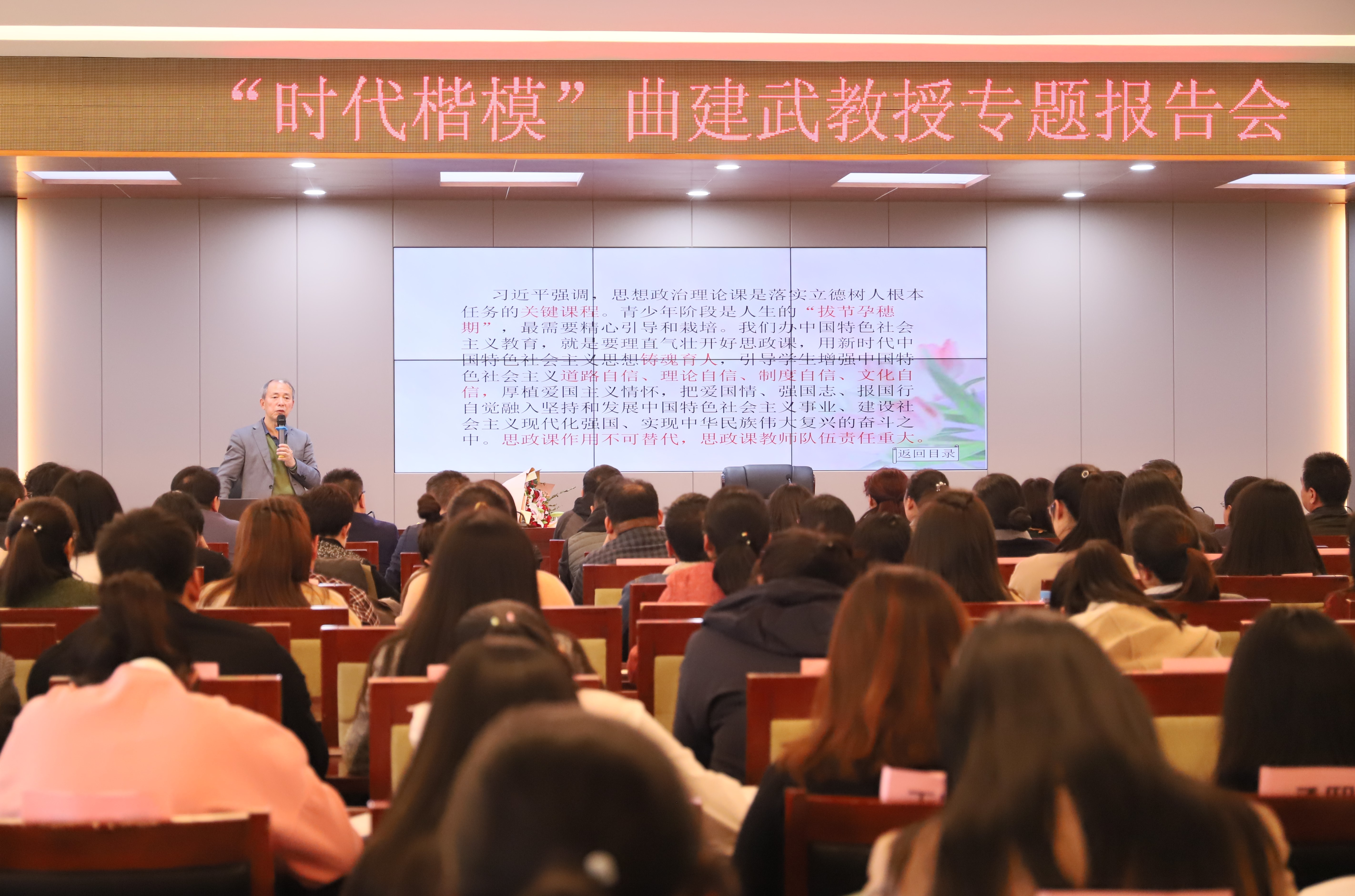 11月6日,全国“时代楷模”“全国优秀教师”“最美奋斗者”“全国诚实守信模范”、大连海事大学曲建武教授受邀来我院做专题报告。学院党委副书记王建刚,相关部门负责人、马克思主义学院全体教师、全体辅导员聆听了报告。