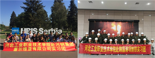 一是服务钢铁产能输出,学生海外实习,实现技能交流。绿色钢铁生产专业集群主动对接河钢集团国际产能合作及钢铁产能全球布局,教师团队开展河钢塞尔维亚公司在华培训项目,并赴塞尔维亚为当地职工提供培训。2018年7月,专业集群20名优秀学生赴河钢集团塞尔维亚公司开展海外实习;9月,另一批20名学生赴韩国实习团,到全球最大的钢铁制造商之一的韩国浦项钢铁集团浦项制铁公司开展国外实习,进一步开展职业技能的国际交流。