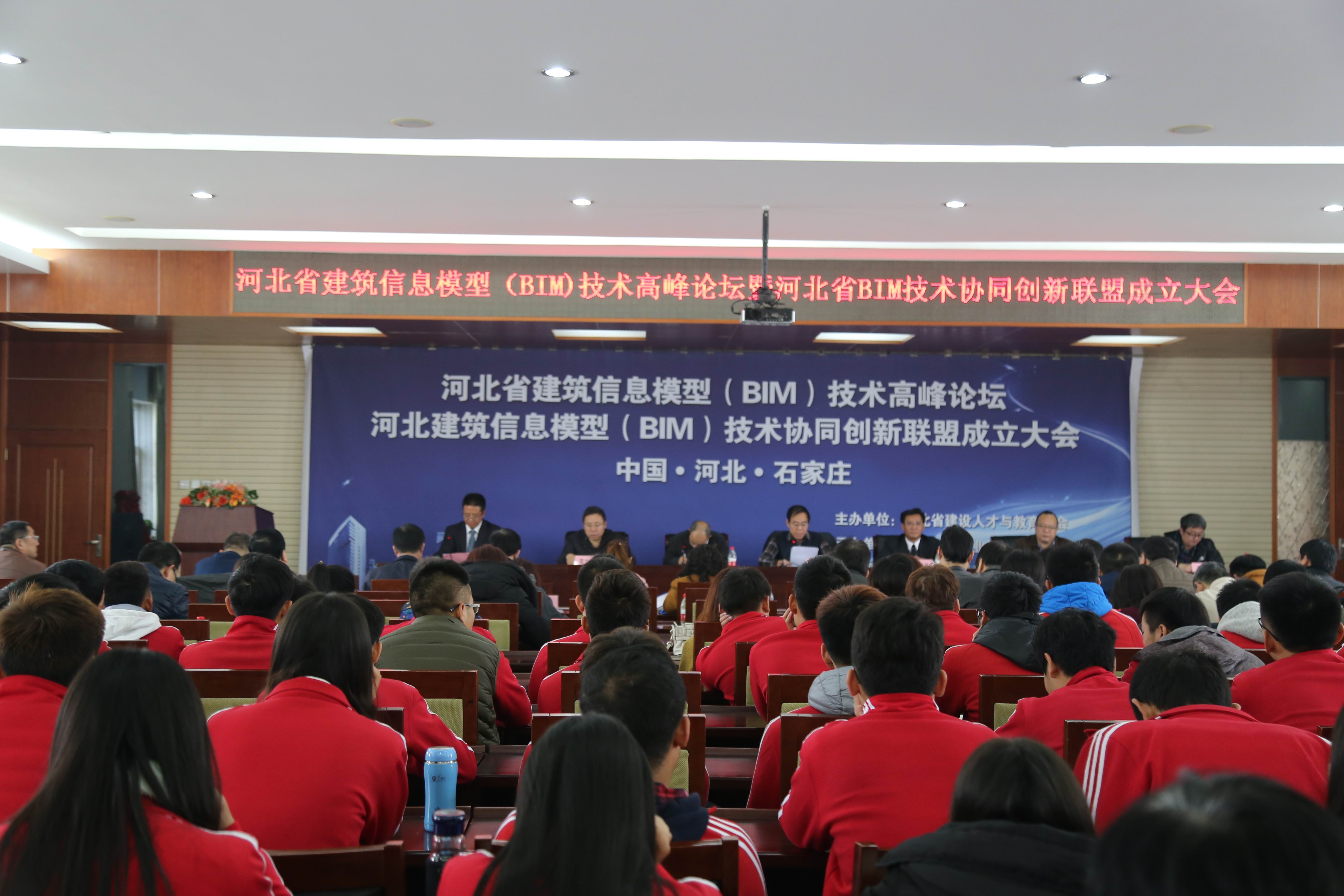 11月4日,由我院协办的河北省建筑信息模型(BIM)技术高峰论坛暨河北省BIM技术协同创新联盟成立大会在学院报告厅隆重召开,会议由我院韩提文副院长主持,学院院长贾俊礼,省建设人才与教育协会、省住建厅领导出席会议并讲话。省建研院、北京谷雨时代等相关单位以及来自全省的联盟成员单位及代表应邀参加会议。大会表决通过了河北省BIM技术协同创新联盟章程,宣读了第一届理事会成员名单,确定了联盟培训基地并举行了谷雨数字建造学院揭牌仪式。