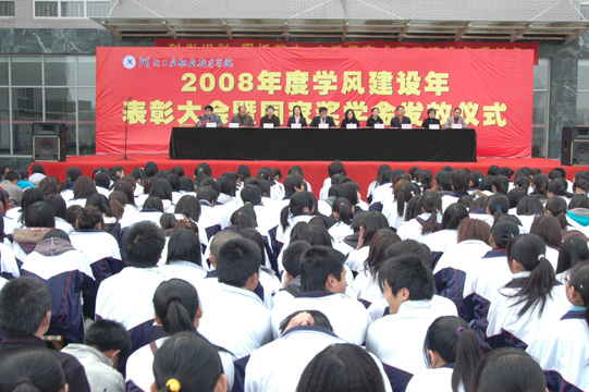 为深入学习实践科学发展观,积极推动学院国家示范院校建设,巩固和扩大学风建设成果,营造优良学风,鼓励学生成才,我院于3月24日隆重召开“2008年度学风建设年表彰大会暨国家奖学金发放仪式”,王世龙副院长出席了表彰大会,各系党支部书记、团支部书记、辅导员及1000名学生代表参加了发放仪式。