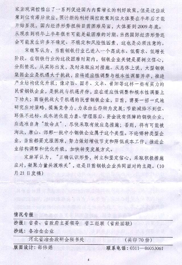 河北省冶金政研会情况专报:专家对当前国内钢铁市场和经济形势的认识