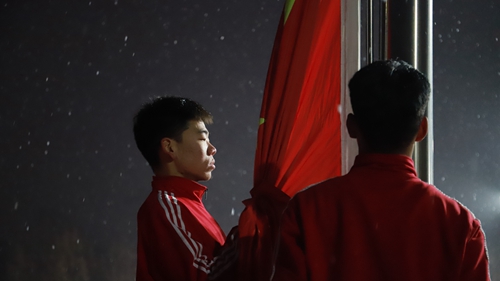 早晨7时整,晨光熹微,雪花飘扬,灰色的天空渲染了庄严静穆的气氛,降半旗仪式正式开始。钢铁连的同学们步伐铿锵有力,护送国旗至旗杆下,在庄严的《义勇军进行曲》中,鲜艳的五星红旗在飞雪中冉冉上升,全场人员神情肃穆,行注目礼。国旗升到最高点,随后缓缓下降,在场全体学生默哀一分钟,为那些在南京大屠杀中遇难的30万同胞及为争取民族解放而英勇献身的英烈们默哀。活动最后,主持人团带来诗朗诵《我看》,号召同学们常怀忧患意识和自强精神,将小我融入大我,担当作为,砥砺前行,进一步激发同学们的爱国热情。