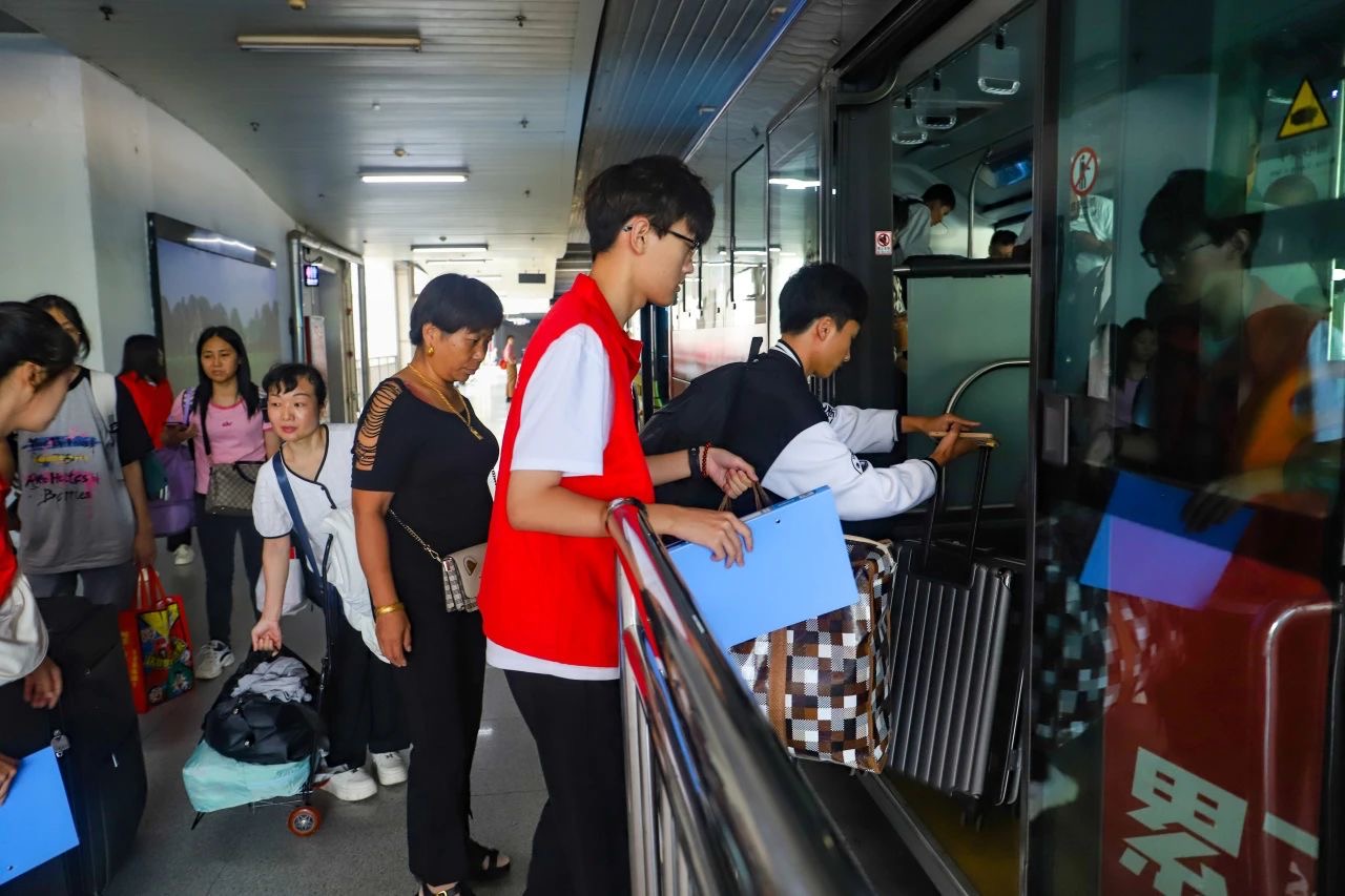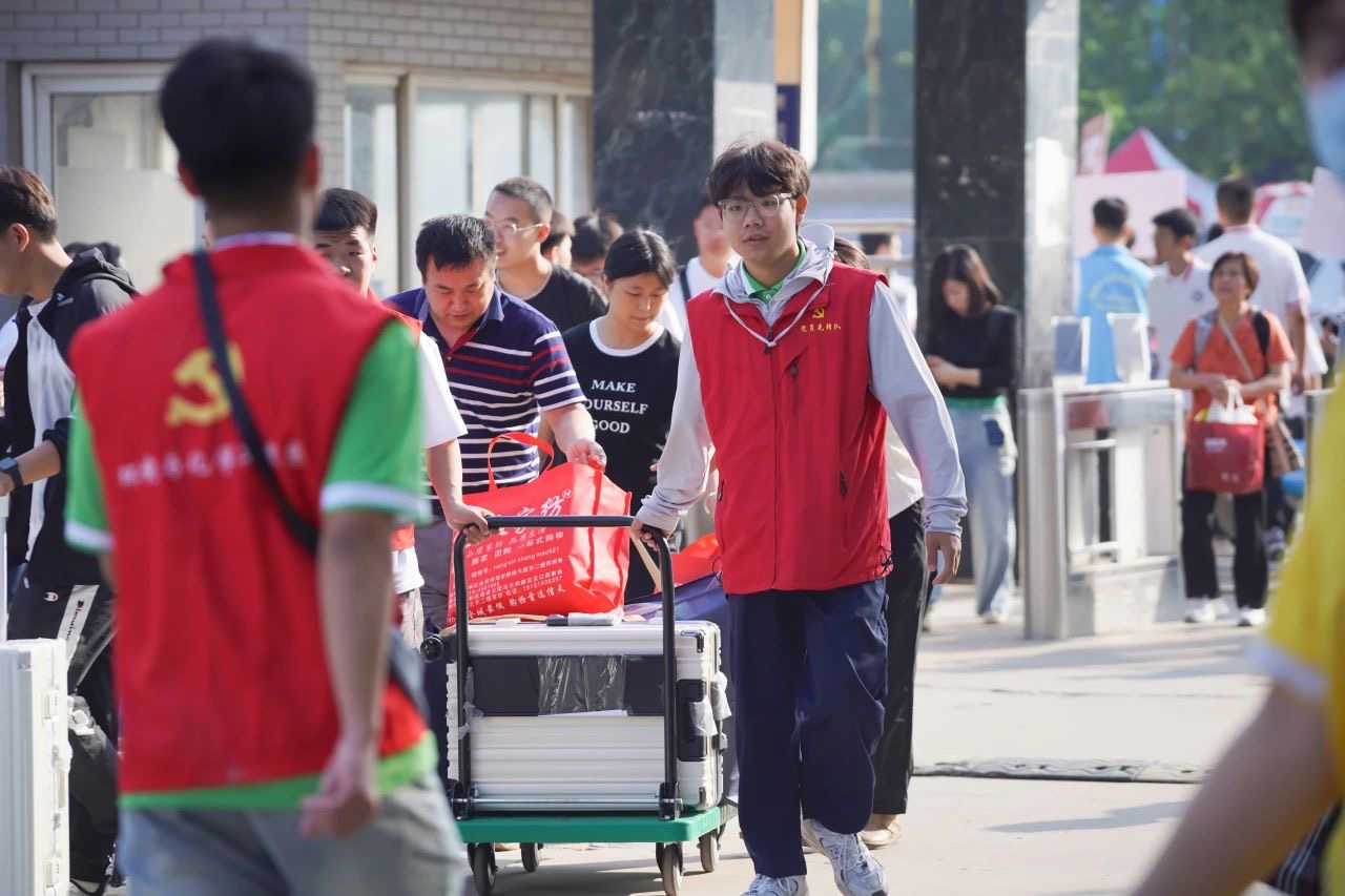 报到现场,学校百余名在校生志愿者团队组织有序、分工明确、工作高效,为新生提供点对点周到服务,帮助新生搬运行李、指引方向,热情介绍学院情况。各系(院)新生辅导员认真、耐心解答新生在报到过程中的有关问题,帮助新生尽快适应大学生活。