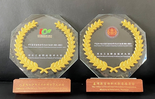 鉴于“燕赵丝路学院”境外办学项目在国际教育合作和服务国际产能合作方面做出的积极贡献,巴基斯坦伊斯兰共和国驻华大使馆和泰国教育部职业教育委员会分别向我校颁发了“中巴教育国际合作突出贡献奖”和“中泰职业技术教育国际合作突出贡献奖”。