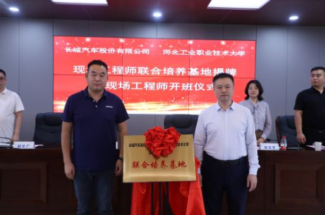 为进一步贯彻落实《教育部办公厅等五部门关于实施职业教育现场工程师专项培养计划的通知》文件精神,加快培养更多适应新技术、新业态、新模式的高素质技术技能人才。2024年9月29日下午,我校与长城汽车股份有限公司联合共建的“现场工程师联合培养基地”暨现场工程师班开班仪式在行政楼报告厅举行。长城汽车股份有限公司人力资源部部长石中强、徐水分公司人力资源部部长胡文广等企业领导及导师代表,学校副校长曾强教授出席会议。汽车工程系负责人、校内导师代表及首届长城现场工程师班全体学生参加了本次开班仪式。