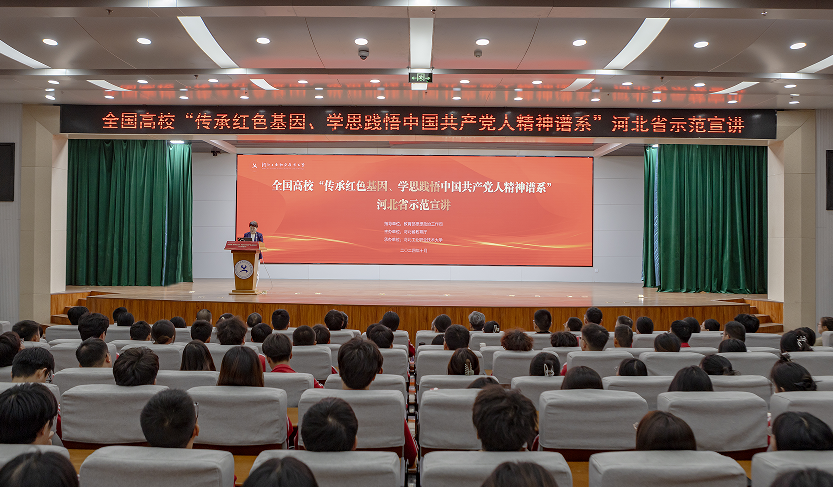 10月16日,由教育部思想政治工作司指导,河北省委教育工委、省教育厅主办的全国高校“传承红色基因、学思践悟中国共产党人精神谱系”河北省示范宣讲在我校举行。5位宣讲专家进行了示范宣讲。教育部思想政治工作司宣教处副处长周伟辉、河北省教育厅德育中心主任蔡杭州出席,学校领导班子成员,学校师生代表500余人参加。