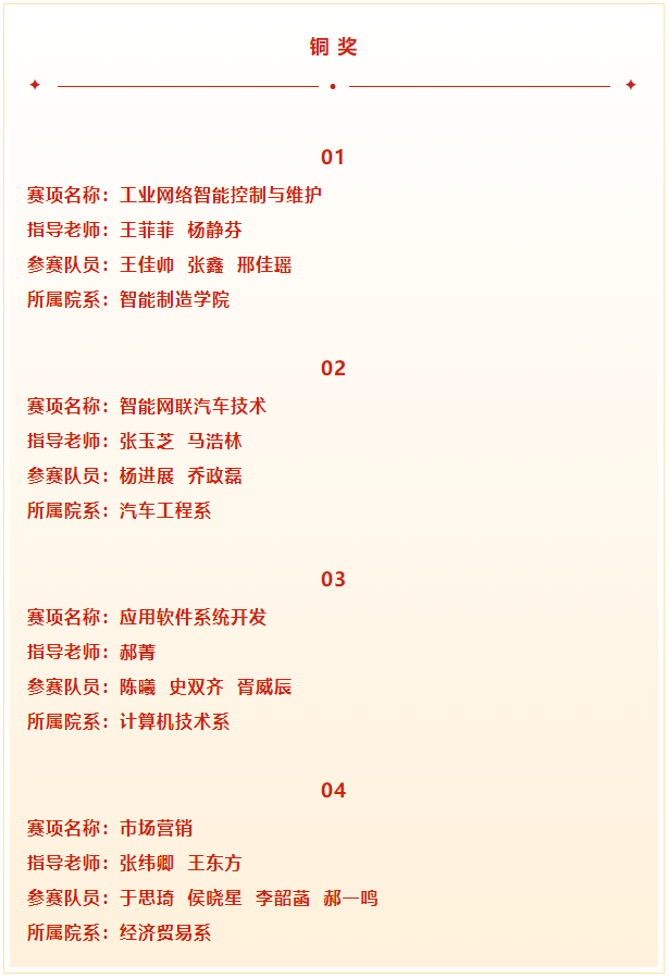 10月21日至11月1日,2024年世界职业院校技能大赛总决赛争夺赛在全国各个赛区相继开赛,我校各院系参赛队伍奔赴全国各地参与总决赛争夺赛的角逐,各团队攻坚克难、紧密合作,共取得了3金3银4铜的好成绩。