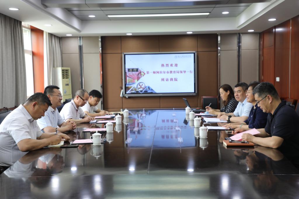 5月19日,第一师阿拉尔市教育局局长杨建刚、塔里木职业技术学院院长陈鹏黎等一行4人到我校考察交流。