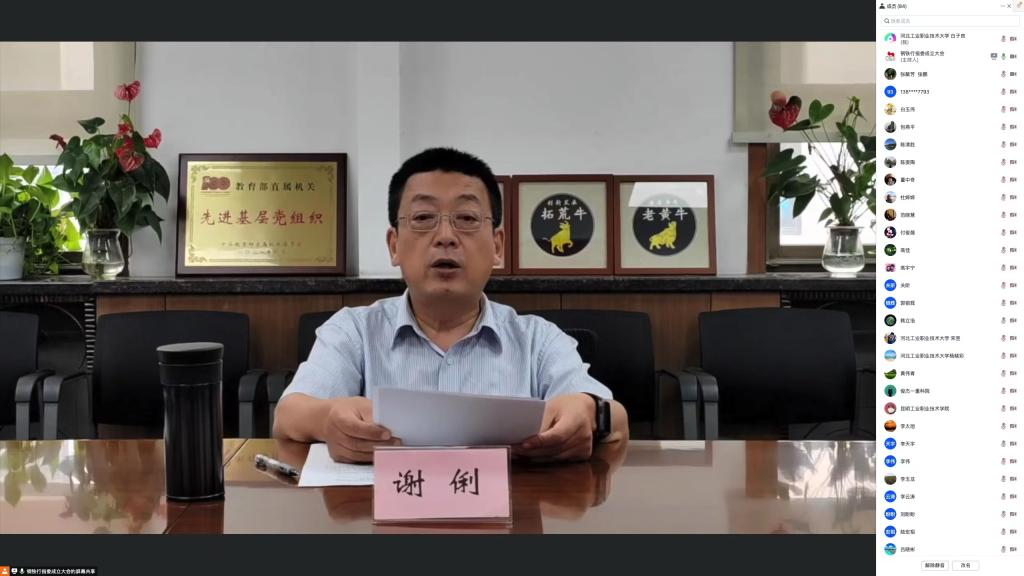 本次会议得到了教育部职业教育与成人教育司的高度重视和大力支持,教育部职业教育与成人教育司副司长谢俐,教育部行指委工作办公室常务副主任王国川,新一届钢铁行指委主任委员、中国钢铁工业协会党委副书记姜维出席会议,此次会议以线上的形式举办,钢铁行指委主办,我校承办。