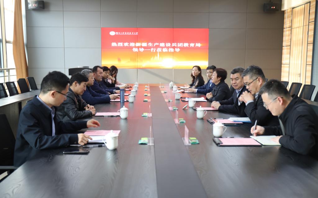 3月31日下午,新疆生产建设兵团教育局党组成员、副局长郭佳等一行6人到学校考察交流。党委书记王振杰、校长薛晓萍出席接待活动。