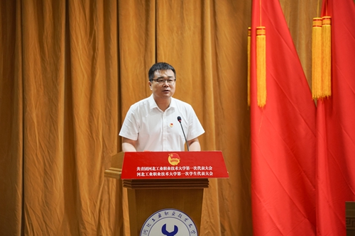 大会在庄严的国歌声中拉开序幕。学校党委副书记付俊薇代表学校党委向本次团学代会的召开表示热烈祝贺,向关心和支持我校共青团工作的省直团工委、省学联、兄弟高校表示衷心的感谢,向全校团员青年致以亲切的问候。付俊薇肯定了我校各级团组织和学生会在思想引领、创新创业、社会实践、志愿服务、文化活动等方面取得的优异成绩,并就接下来的工作提出了三点希望:一是坚定理想信念,永远听党话、跟党走;二是不断深化改革,开拓新思路、新局面;三是唱响青春之歌,练就真功夫、硬本领。省直团工委副书记李颖向我校团学代会的召开表示了热烈的祝贺,肯定了我校各级团组织为促进青年学生全面成长、成才发挥的重要作用,并对高校共青团面临的新形势、新任务、新要求提出了宝贵意见。省学联驻会执行主席张琳肯定了我校学生会服务同学成长成才的业绩,并为加强学生会组织建设提供了新思路。河北交通职业技术学院团委书记苏士杰表达了与我校团委携手并肩、砥砺前行,共同谱写共青团事业新篇章的深厚友谊。