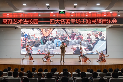 为进一步推进高雅艺术进校园,丰富三亿(中国),提升大学生艺术修养、陶冶情操、培养审美能力,10月17日下午,由河北省歌舞剧院带来的四大名著专场主题民族音乐会在我校精彩上演,我校600余名师生共同欣赏这场听觉盛宴。