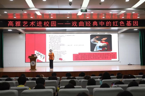 当艺术撞上思政,舞台变成讲台。激昂的戏曲旋律揭开了历史的面纱,艺术的魅力展现了思政的张力。近期,河北省戏剧家协会副主席、河北梆子非物质文化遗产传承人彭蕙蘅老师用唱演讲相结合的方式,带来了一场“戏曲经典中的红色基因”的主题讲座,500余名师生走进现场,在课堂中体验了传统文化与思政力量交织的魅力。