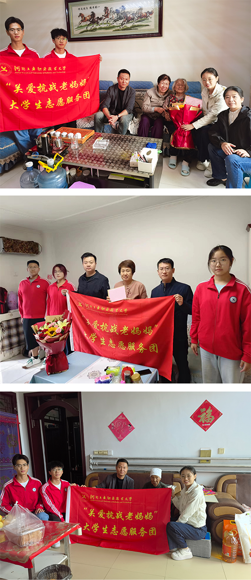 为进一步弘扬爱国主义精神,传承红色基因,学习和发扬“抗战老妈妈”爱党爱国革命精神。10月9日,我校积极响应河北省直团工委号召,联合平山县妇联、平山县老促会妇委会开展关爱“抗战老妈妈”志愿服务活动,来自智能制造学院与环境与化学工程系的两支师生志愿服务队,分别前往石家庄市市区及平山县城寻访看望了白树芳、王占婷和李二翠三位“抗战老妈妈”。