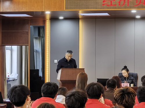 擎祥能源科技集团副总裁王润迪致辞,强调对教育的支持,鼓励学子勤学不辍,为社会贡献力量。经济贸易学院党总支书记回应致谢,勉励学生勇担时代责任。