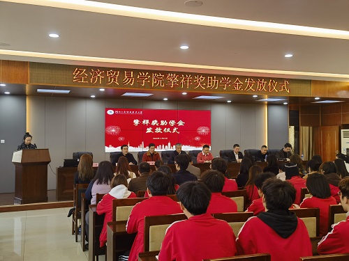 2024年11月21日,我校经济贸易学院与擎祥能源科技集团联合举办“擎祥奖助学金”发放仪式,旨在支持优秀学子完成学业并深化校企合作。擎祥能源科技集团董事长季小军,集团总裁洪赟,集团副总裁、河北民营企业促进会会长李志彦,集团副总裁、首席新闻官王润迪与经济贸易学院领导共同出席。