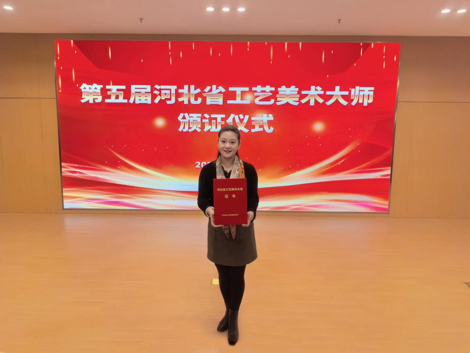 近日,第五届河北省工艺美术大师名单公布,我校马克思主义学院教师郭墨涵荣获“河北省工艺美术大师”称号。