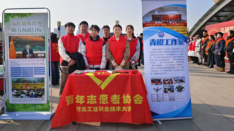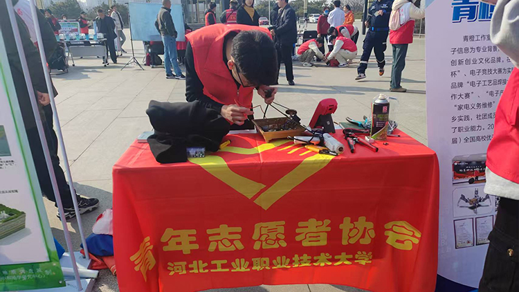 3月5日上午,“弘扬雷锋精神 传播志愿薪火”主题活动启动,共青团河北省委、河北省爱心公益协会、站管委等指导部门参加活动。“小青星驿站”作为其中贴近群众、奉献爱心的便民服务窗口,是河北省着力打造的志愿服务品牌,我校作为志愿服务团队之一进行展示,在2024年我校大学生青年志愿者协会447名志愿者在“小青星驿站”开展志愿活动累计服务3400余小时。启动仪式后,“河北省优秀志愿服务组织”青橙工作室社团进入现场志愿服务摊位,为市民进行小家电维修,此前社团多次受邀参加石家庄市志愿服务经验分享。