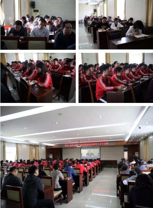 纪念五四运动100周年大会4月30日上午10时30分在人民大会堂举行。中共中央总书记、国家主席、中央军委主席习近平出席大会并发表重要讲话。我院在行政楼报告厅主会场及18个分会场组织师生第一时间通过多种途径、多种形式,观看了大会盛况;广大师生通过座谈会、主题班会、微信群、朋友圈等形式热议习近平总书记在庆纪念五四运动100周年大会上的重要讲话精神。