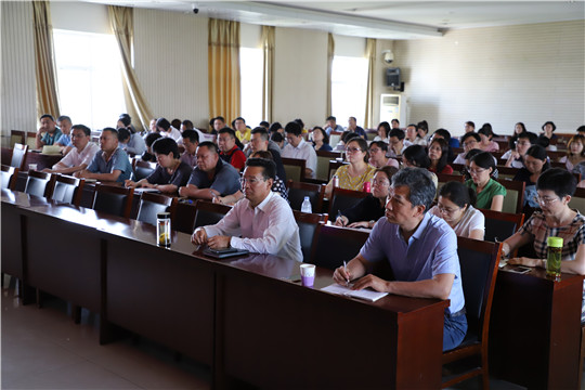 为进一步深入学习领会习近平总书记在学校思政课教师座谈会上的重要讲话精神,全面贯彻党的教育方针,落实立德树人根本任务,5月23日,我院特邀河北师范大学朱月龙教授在行政楼五楼报告厅做《深入领会习近平3.18讲话精神,努力使思政课教学产生理想效果》专题讲座,学院院长贾俊礼、党委副书记王建刚出席讲座,马克思主义学院思想政治理论课教师、各系(部)骨干教师、党总支(直属党支部)书记、部分辅导员及组宣部、学生处全体人员近两百人聆听了讲座。