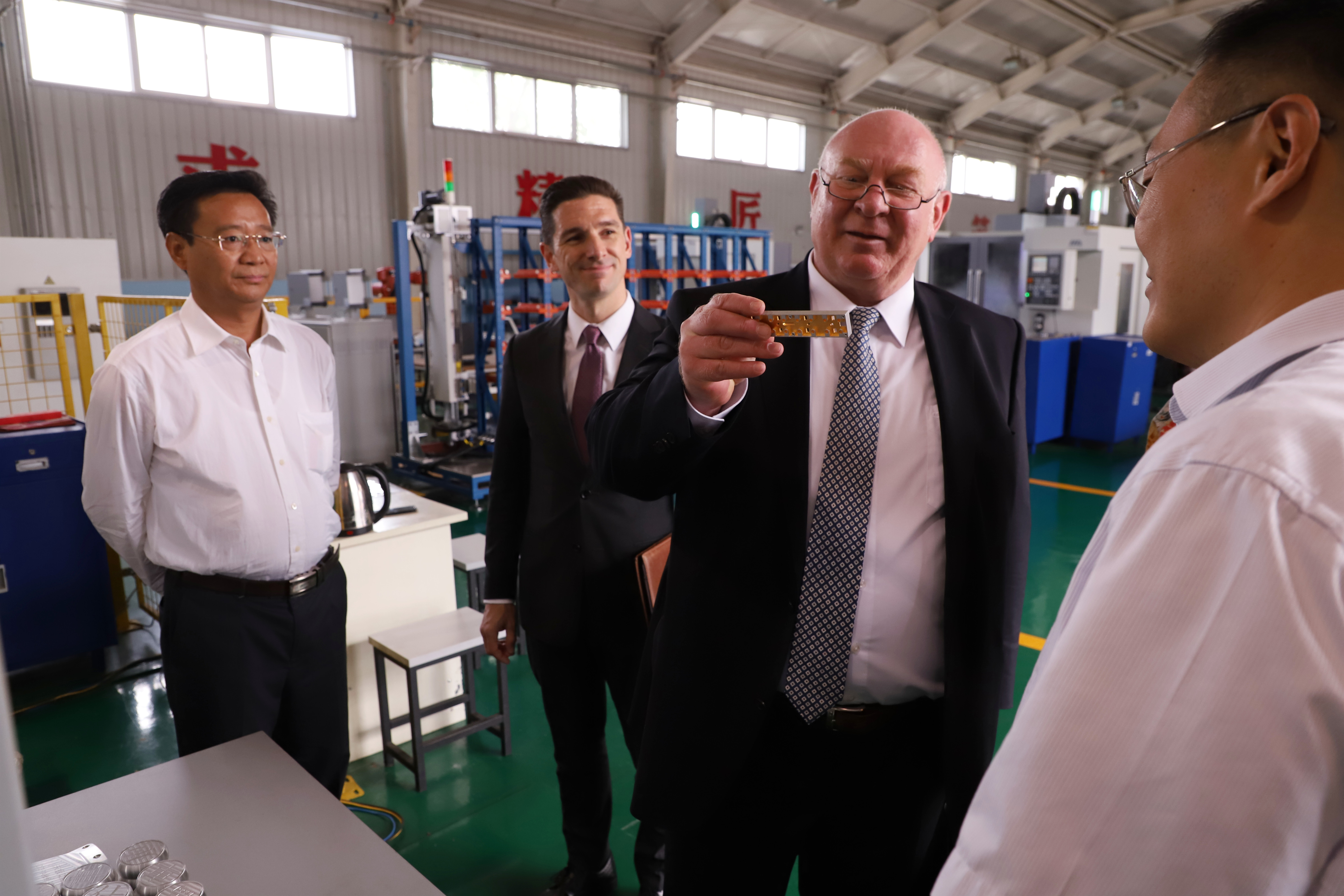 来宾首先参观了我院汽车工程系实训基地、智能制造实训基地和铁板浮雕艺术馆。在随后举行的座谈会上,学院领导介绍了我院基本情况和近年来我院的国际化发展情况。瓦尔德马尔·伯格先生也对代根多夫应用技术大学进行了介绍,并表达了希望与我院开展进一步合作的良好愿望。双方就教师培训、课程开发与课程标准制定等方面的合作交换了意见