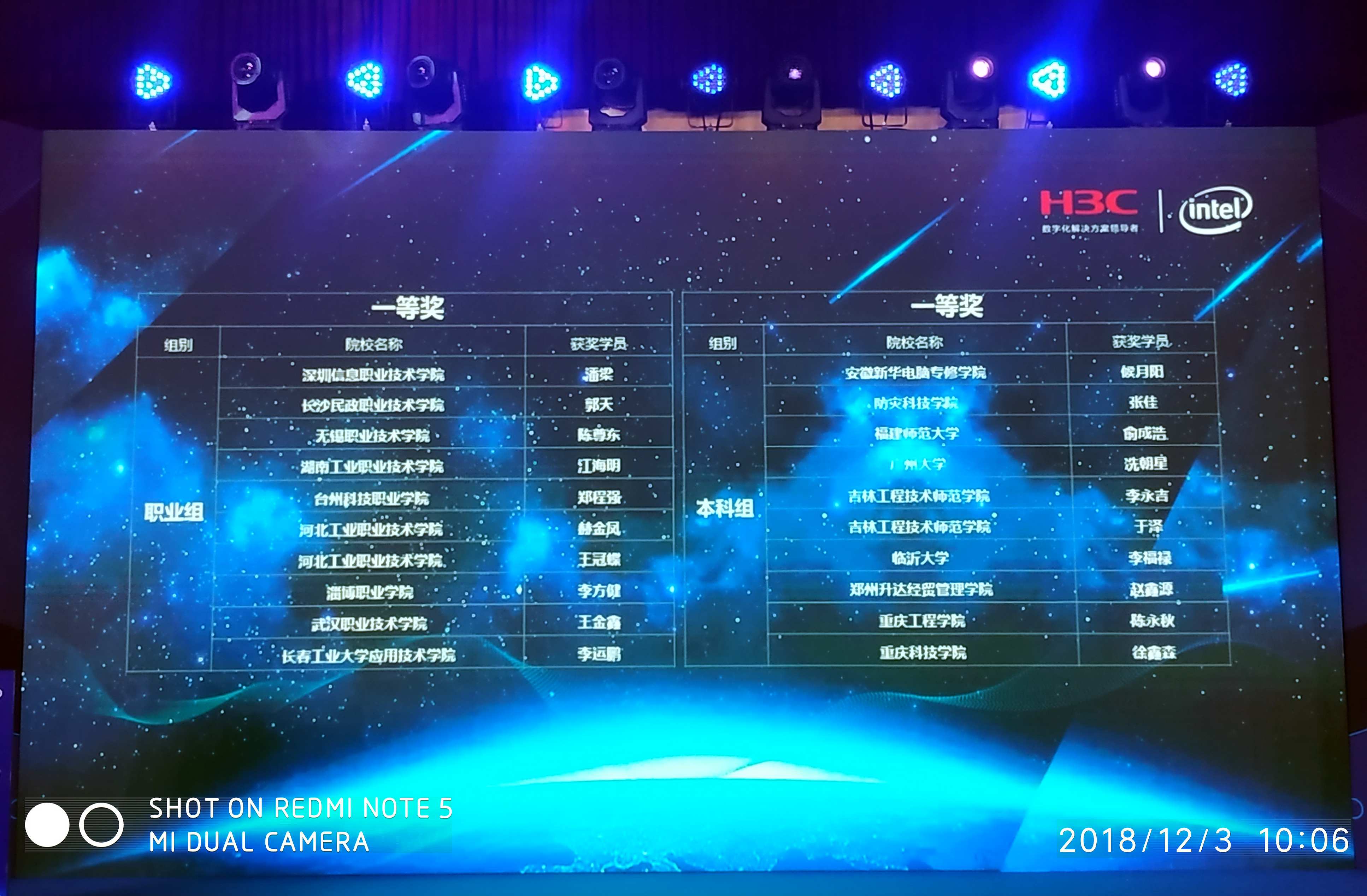 日前,由新华三集团和全国高等院校计算机基础教育研究会联合主办,新华三大学、杭州电子科技大学承办的第八届“新华三杯2018年全国大学生数字技术大赛”在杭州圆满落幕。我院计算机技术系五名同学从全国7000余名选手中脱颖而出,进入决赛,并喜获一等奖2项,二等奖2项,优胜奖1项。本次大赛实现了我院该赛项10年来一等奖零的突破。