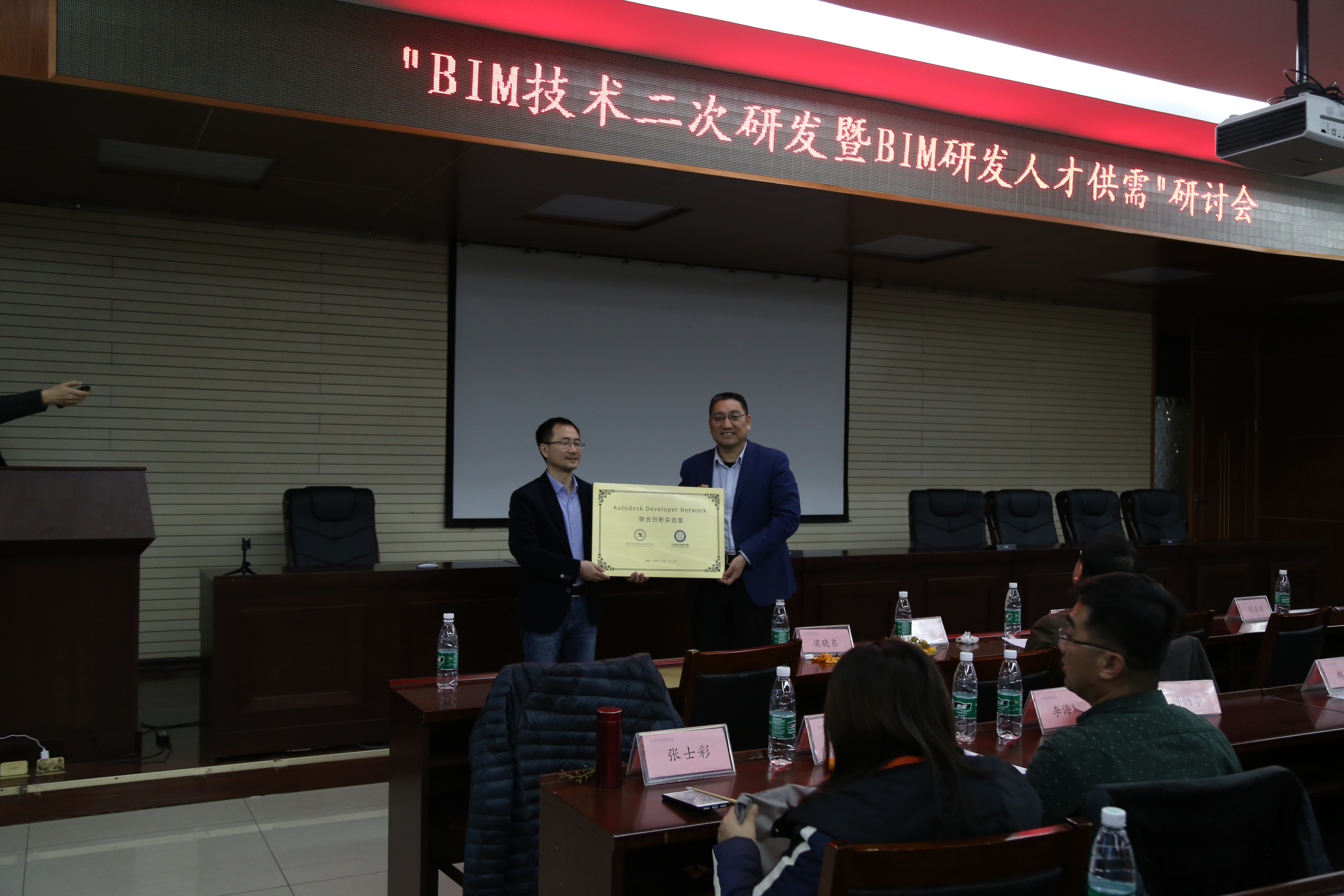 为响应党的十九大关于“要建设一支知识型、技能型、创新型劳动者大军”的号召和建筑业发展“十三五”规划中有关技术进步的倡议,12月21日,北京绿色建筑产业联盟联合Autodesk教育支持中心在河北工业职业技术学院举办“BIM技术二次研发暨BIM研发人才供需”研讨会。河北工业职业技术学院常务副院长付俊薇、北京绿色建筑产业联盟理事长陆泽荣、北京工业大学副教授刘占省、Autodesk Forge & AND 高级顾问梁晓东、北京橄榄山软件有限公司总经理叶雄进、北京谷雨时代教育科技有限公司运营总监加强以及建筑工程系负责人及师生出席会议。