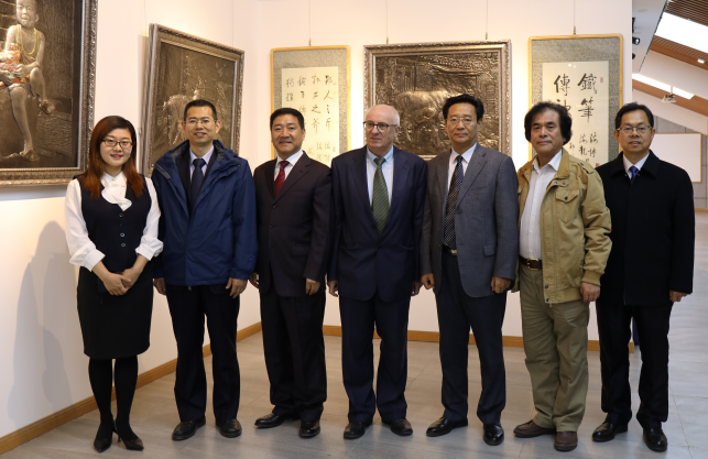 德方客人参观我院铁板浮雕大师工作室