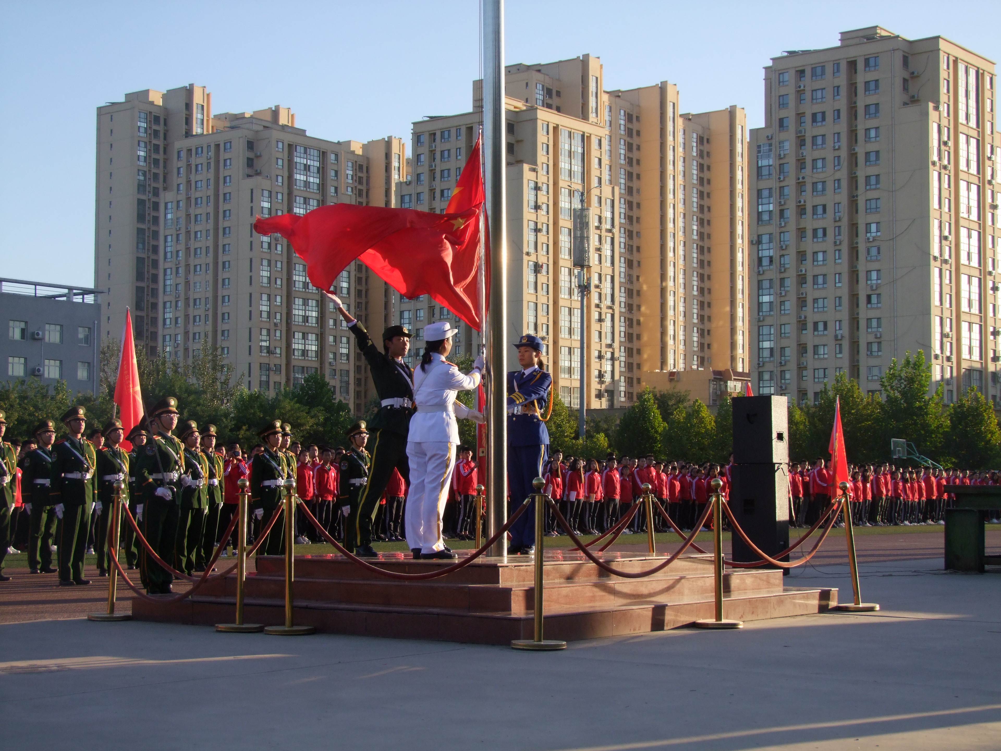 在第五个烈士纪念日到来之际,为充分激发广大师生缅怀先烈、爱国报国情怀,9月30日上午7时,我院在南校区体育场举行了“铭记历史·砥砺前行”烈士纪念日升旗仪式。学工部负责人、各系党总支书记、副书记、团总支书记、18级新生辅导员、全体18级同学参加了升旗仪式。