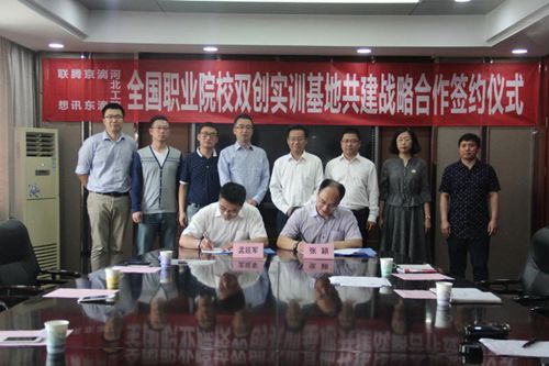 5月14日,我院与联想、腾讯、京东、滴滴四家业界龙头企业,举行全国职业院校双创实训基地共建校企合作战略合作协议签署仪式。职业教育装备专业委员会刘永家主任、联想集团鲁维总监、腾讯集团张利刚总监、滴滴集团张颖总监、京东集团吴樑总监、学院贾俊礼院长、三亿网站处负责人、教务处负责人、计算机技术系负责人出席了本次签约仪式。