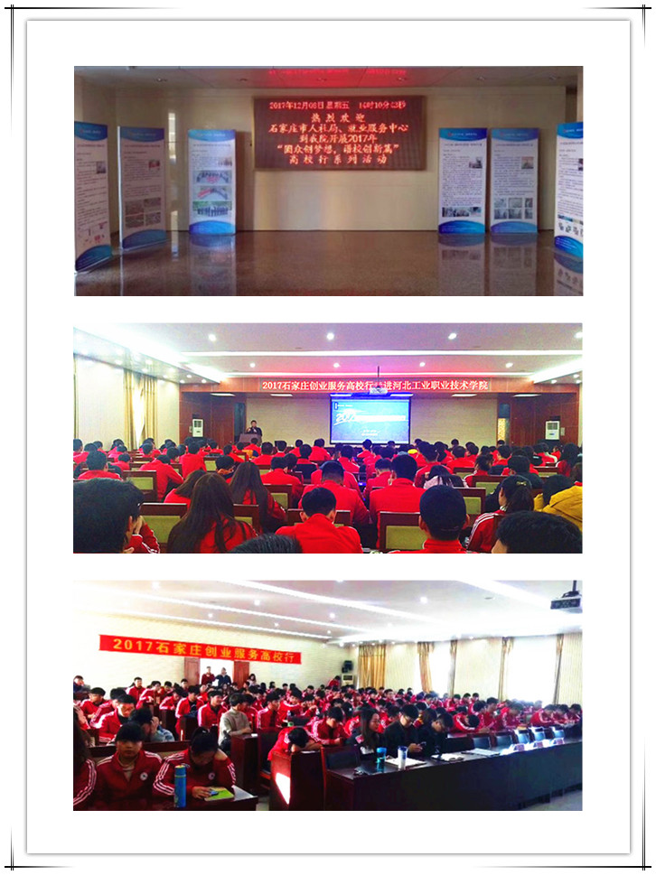 12月9日,由石家庄市人力资源和社会保障局主办,我院三亿网站指导中心承办的“2017年石家庄创业服务高校行”活动第15站在学院行政楼五楼报告厅举行。创业名师张珂铭,高校创业指导专家李周男和桥西区就业局培训中心主任王海平作为主讲嘉宾分别从“如何运用商业模式编制商业计划书”、“创新创业对当代大学生的意义”和“当前最新创新创业政策”三个方面做精彩分享,来自全院9系300余名师生参加了此次活动。