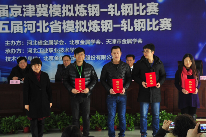 “模拟真实环境,练就真正技能”。理论知识竞赛场内,各参赛队员沉着冷静,努力发挥最佳水平,展开了炼钢、轧钢理论知识比拼;仿真操作竞赛中,各参赛队员通过各项指标控制,力求在规定时间内降低成本,冶炼、轧制出高质量成品。在各项比赛环节中,裁判组成员秉承“公开、公平、公正”原则,严格按照竞赛规则、评分标准,认真履行职责,以高度的责任心和严谨的工作作风,圆满完成各项裁判工作。经过2日下午、3日上午的激烈角逐,河北工业职业技术学院和唐山国丰钢铁有限公司分别荣获高校组、企业组团体一等奖;我院参赛学生以扎实的专业理论功底与精湛的仿真操作技术包揽了炼钢、轧钢单项冠军争夺赛一等奖殊荣。北京金恒博远冶金技术发展有限公司特别荣获“技术支持奖。”至此,首届京津冀模拟炼钢-轧钢比赛暨第五届河北省模拟炼钢-轧钢比赛圆满落下帷幕。