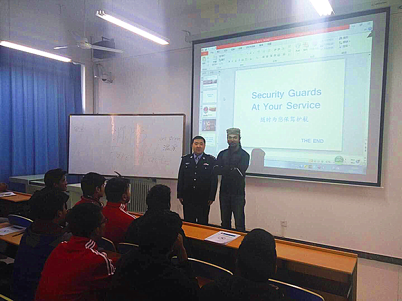 本次讲座由学院安全工作处相关教师主讲,老师们首先将我国与孟加拉国的交通法规及行驶习惯进行了对比,并把近年来由于不遵守交通法规而造成的交通事故向留学生们做了全面深刻的分析,使留学生们认识到遵守交通法规的重要性,同时结合留学生们的生活实际,利用通俗易懂的语言进行了深入浅出的讲解。其后,安全工作处老师通过真实的火灾案例和现场示范相结合的方式,将生活中造成火灾的原因、校园安全用电常识及电器火灾预防、常见火灾及处理方法,遇到火灾时的逃生自救方法、消防设备如何使用等进行了详细的解释和剖析。为全体留学生上了一堂别开生面的消防安全知识课。