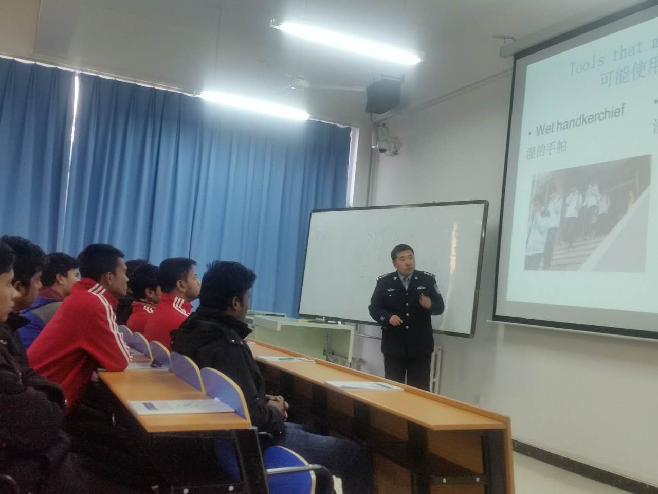 11月21日下午,为进一步提高留学生的交通安全意识,牢记交通安全法规,掌握交通自护能力,提升同学们的消防安全意识,切实提高正确处理火灾等突发事件的应急能力,学院国际交流中心联合安全工作处举办了“交通安全知识及消防知识讲座”。
