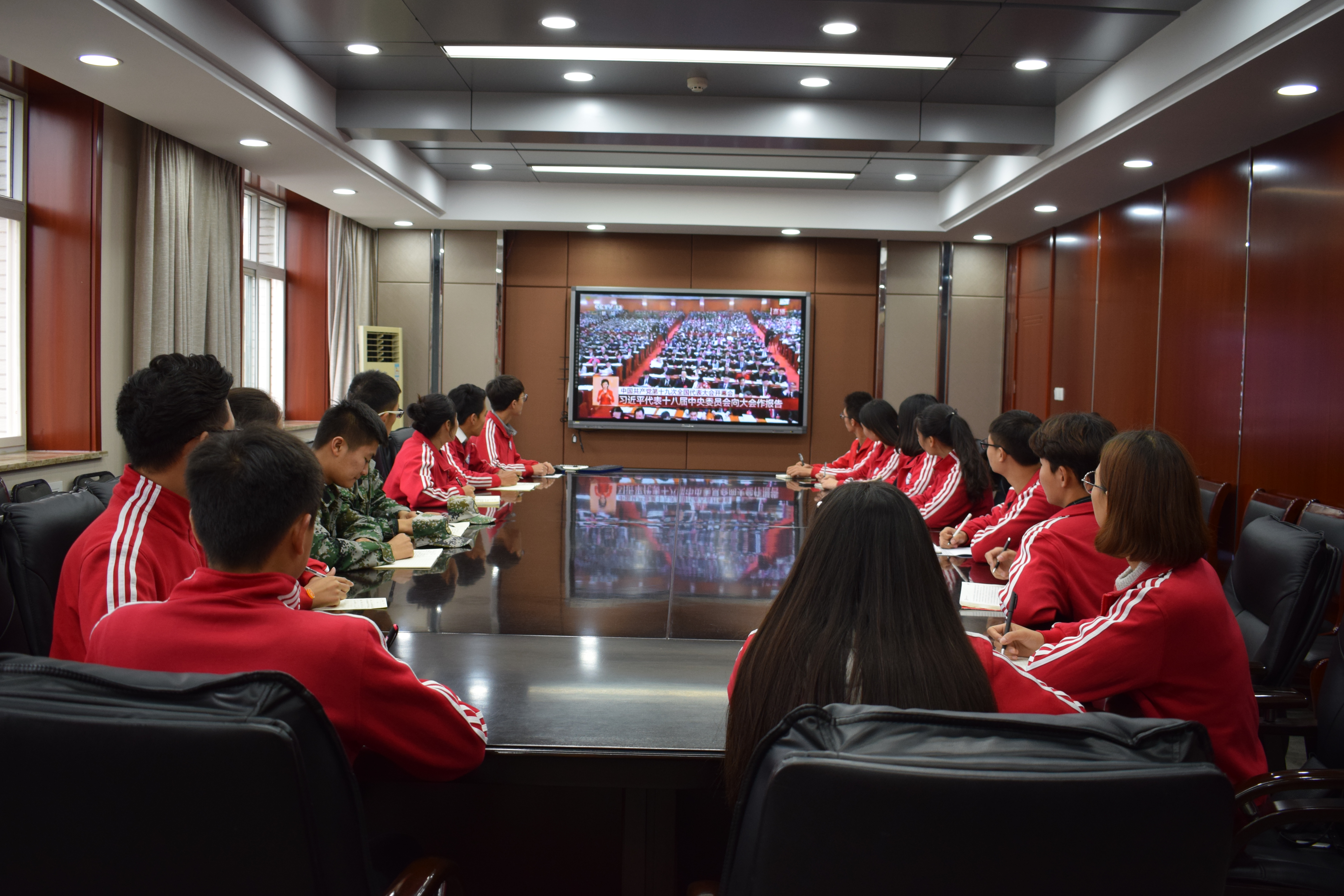 10月18日上午9时,举世瞩目的中国共产党第十九次全国代表大会在京召开,学院各级团学组织通过报纸、电视、广播、网络等不同的途径关注党的十九大开幕。上午8点,团学干部们就早早来到406会议室,满心期待着党的十九大开幕。大会正式开始,同学们认真聆听习近平总书记代表第十八届中央委员会向党的党的十九大作报告,每到精彩之处,同学们纷纷拿出笔记本进行记录。