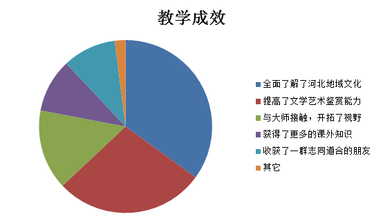 “工院论坛”自2014年3月起举办第一期文化素质讲座以来,将中华传统文化资源融入高校文化素质教育,让传统文化真正在校园扎根。截至目前,共开设讲坛活动83期,近5万人次走进论坛现场,通过制度建设,彰显人文精神和制度文化;围绕地方文化、红色文化、道德文化、励志文化四大主题,实现文化育人全覆盖;突出学生主体,形成文化育人实践体系,在校园内逐渐形成书香浸润,大师引导,文化素质提升的文化氛围。通过课后问卷调查发现,学生对“工院论坛”课程满意度较高,对课程非常满意的占总数的50.8%,对课程比较满意的占总数的25.3%。在课程内容设置方面,对课程内容设置非常满意的占总数的70%,比较满意的占20.5%。在教学成效方面,35%的学生表示最大的收获是全面了解了河北地域文化,28%的学生认为参加工院论坛讲座,提高了文学艺术鉴赏能力,15%的学生认为与国家级、省级大师接触,开拓了自身视野,10%的学生表明工院论坛让他们获得了更多的课外知识,10%的学生表示通过参与工院论坛实践活动,拓展了交友面,收获了一群志同道合的朋友。