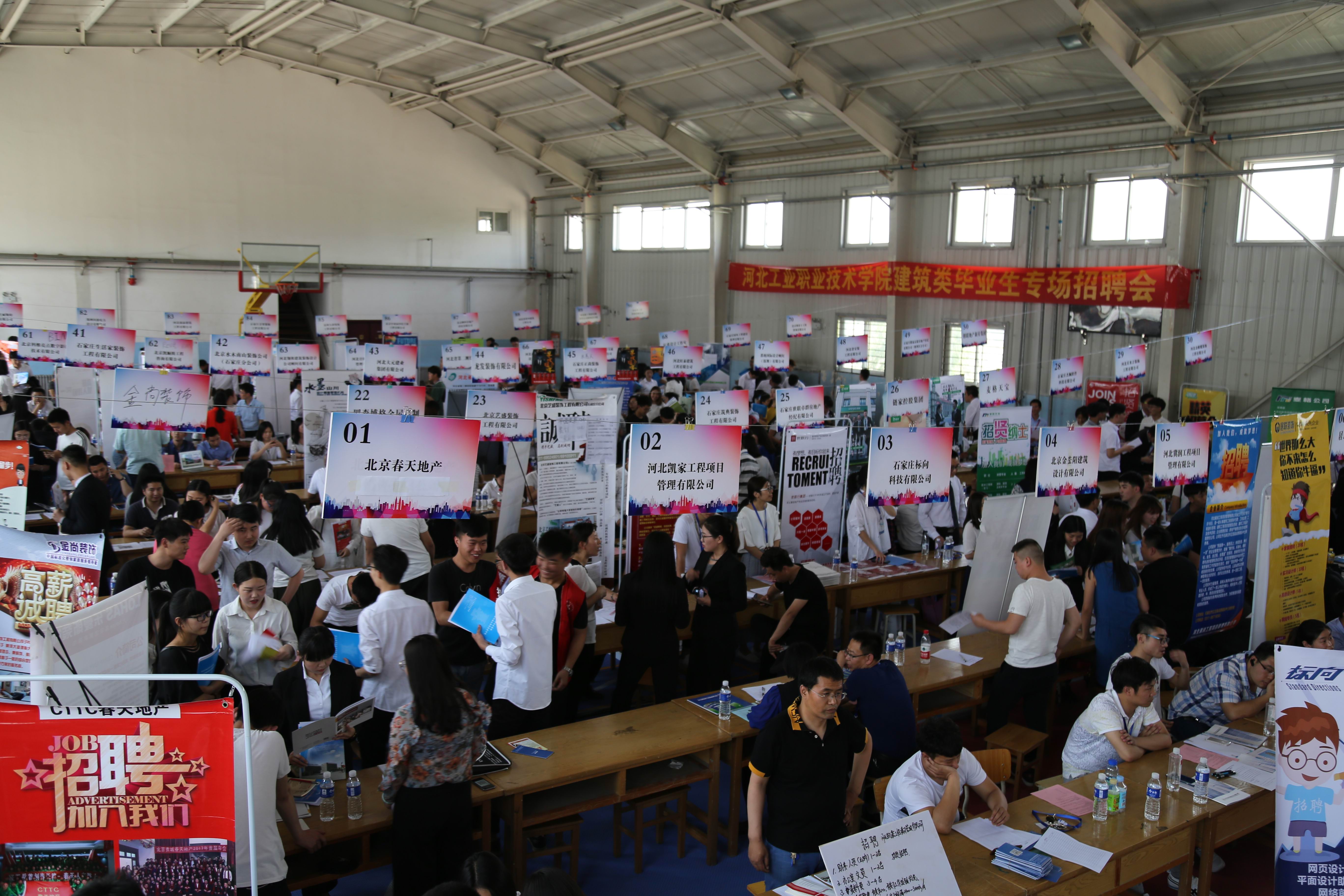 5月12日下午,我院建筑类专场招聘会在学院体育馆召开,来自北京、石家庄的百余家省内外企业单位携带了近2000个实习岗位参与了此次招聘,为2018届毕业生提供了充足、高质量的就业机会。