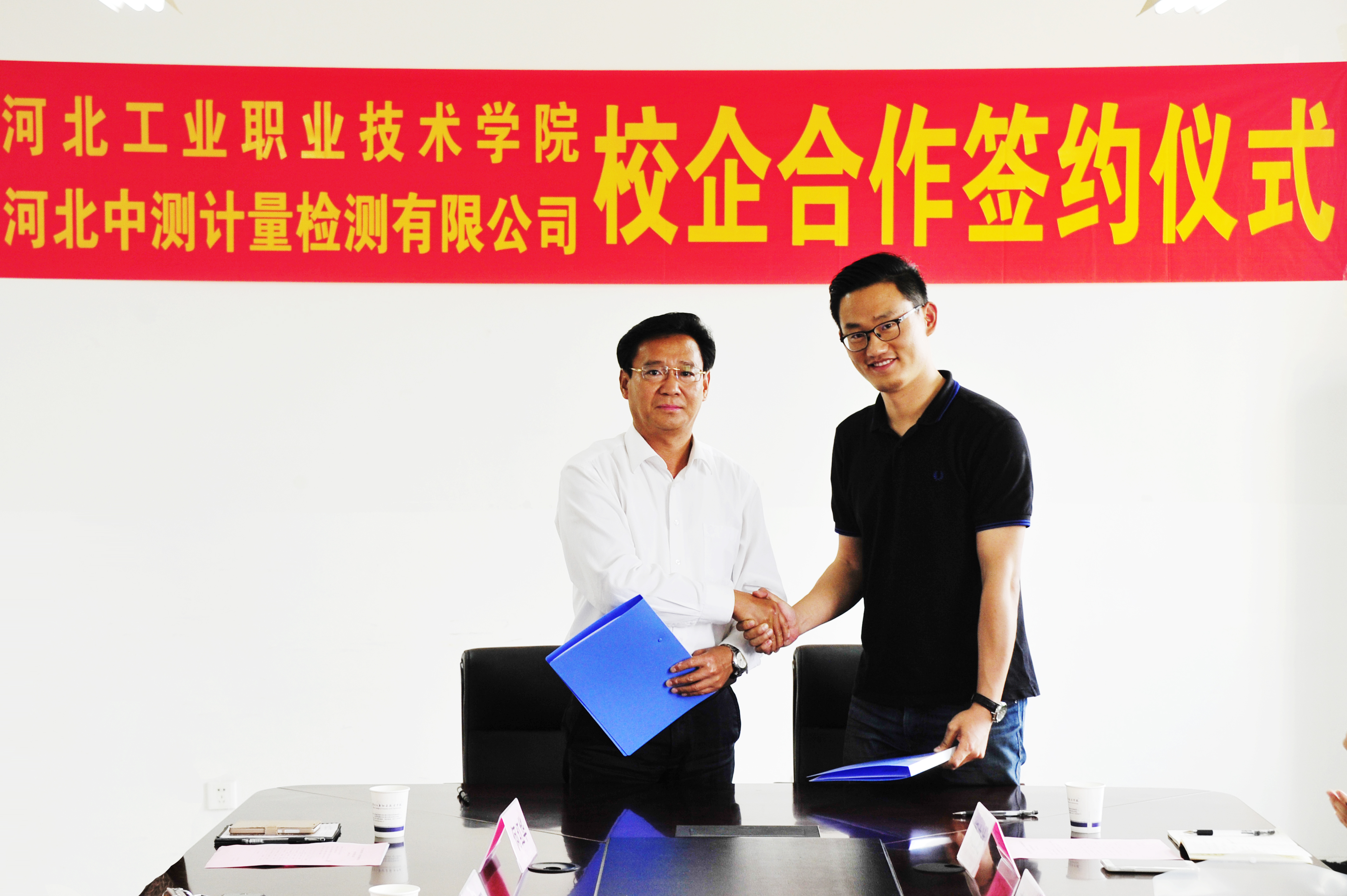 学院院长贾俊礼和河北中测计量检测有限公司总经理任贵龙签署校企合作协议