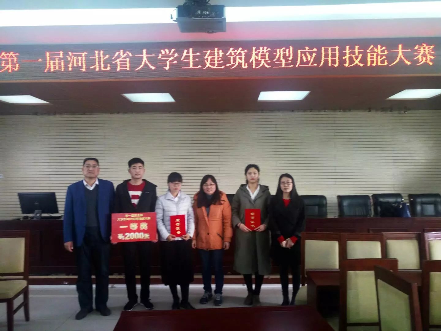 2017年3月5日,河北省第一届大学生建筑信息模型应用技能大赛在我院举行,来自河北工程大学,石家庄铁道大学四方学院,河北建筑工程学院等7支代表队进行了激烈角逐,我院作为唯一一所专科院校参赛,选派的建筑工程系学生代表队表现出色,获得大赛一等奖。