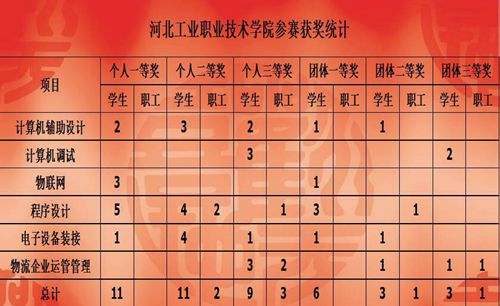 本届大赛我院共14支师生代表队参赛。在赛前,参赛选手们经过严密的封闭集训和充分备战,团结配合、通力合作,最终斩获17项一等奖,17项二等奖,16项三等奖,9名选手荣获河北省技术能手称号,充分展示了我院师生严谨的学术态度、扎实的理论功底、娴熟的专业技能、充沛的创新能力。