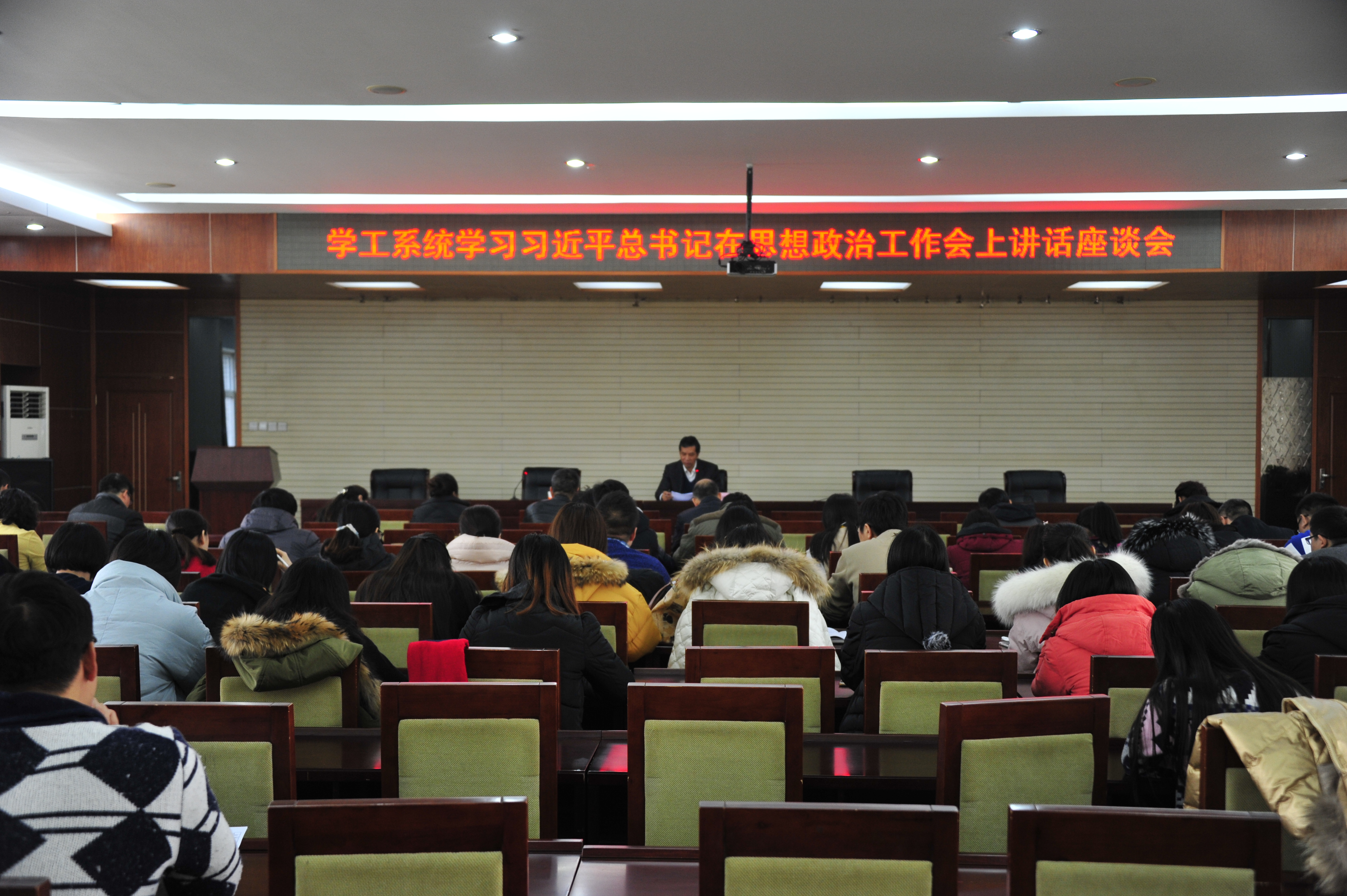 12月14日上午,学工系统召开“学习习近平总书记在全国高校思想政治工作会议上的讲话精神”座谈会,学院党委副书记王建刚出席会议,学工部全体人员,九系党总支书记、副书记,团总支书记和全体辅导员参加。