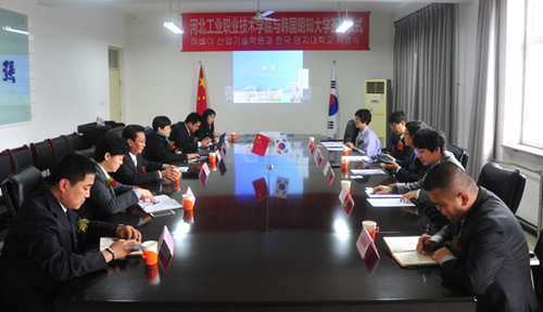 10月28日韩国明知大学副校长金道钟、国际交流院副院长金庸达、影像设计专业主任金亨奎、国际教育院教授咸锦子一行四人来到我院,签订“数字媒体专业3+2、2+1+2”专升本合作项目。我院院长贾俊礼、副院长付俊薇出席签约仪式,国际交流中心、计算机技术系相关负责人参加仪式。