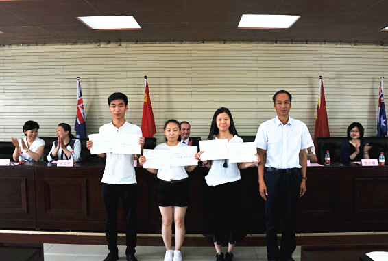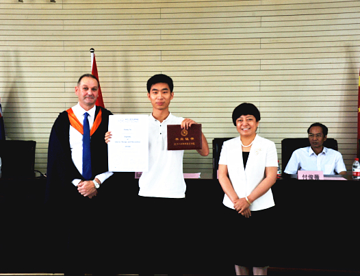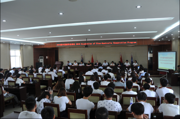 在热烈气氛中,付俊薇副院长和Rodger Carroll先生为2016届毕业生颁发了毕业证书,毕业生们依次上台,手捧毕业证书与领导老师合影留念。2016届中澳班40名同学中,有35人获得河北工业职业技术学院毕业证书,39人获得墨尔本理工学院毕业证书,中澳双证获得率为88%。
