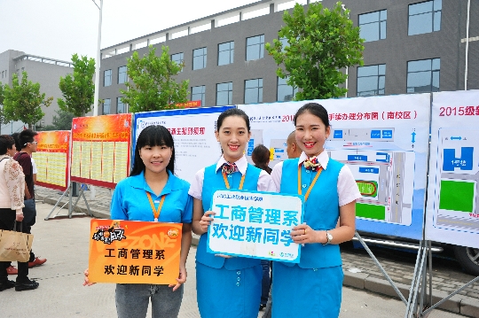 迎新之日,初秋的校园被装点得分外美丽,喜庆和谐。校门口张贴着“热烈欢迎2015级新同学”标语,校园主干道高挂着红色迎新横幅,广播台滚动播放着学院情况介绍和激昂的乐曲,缤纷的彩旗和整齐划一的帐篷,使迎新现场变得既有声有色又井然有序。