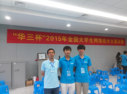 近日,为期近7个月的“华三杯”2015全国大学生网络技术大赛在浙江杭州华三基地圆满落幕。我院计算机技术系选派的徐鹏飞、聂建叶2名同学在决赛中与来自全国29所高职高专院校的40名选手展开激烈角逐,经过笔试、上机与现场问答等环节,最终徐鹏飞获全国第5名、聂建叶获全国第10名的优异成绩。