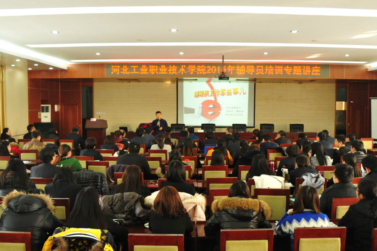 11月25日,学院特别邀请河北省教育厅思政体卫处副处长、德育研究中心副主任蔡杭州来我院为全体辅导员做专题讲座。学院学工部负责人、各系党总支书记、副书记、团总支书记和全体专、兼职辅导员一起聆听了蔡杭州老师精彩的讲座。