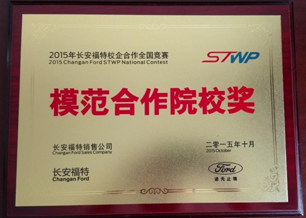 10月15日,我院党委副书记王建刚带队参加2015年长安福特校企合作工作交流暨全国竞赛总结会,我院荣获2015年长安福特校企合作项目“模范合作院校奖”称号。