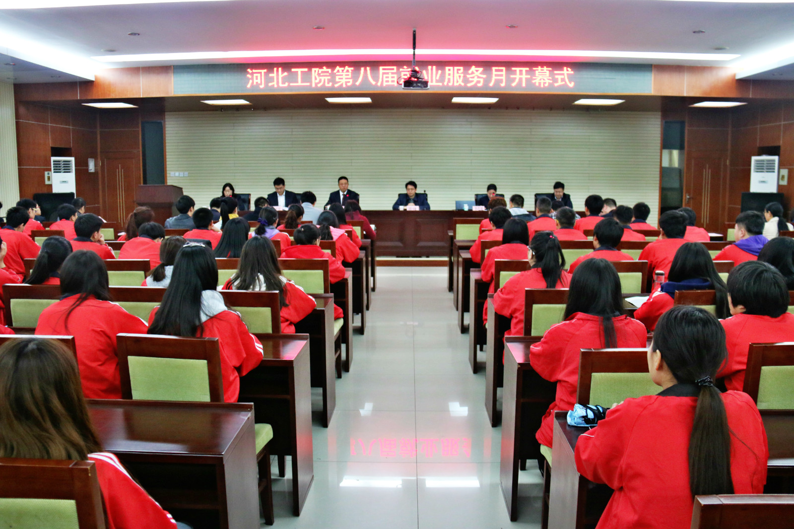 3月31日下午4:00,在五楼报告厅举行我院第八届就业服务月启动仪式。省教育厅就业指导中心周锋主任、石药集团创新事业部郭胜敏副总裁、我院韩提文副院长出席了会议,三亿网站指导中心、校企合作处全体,各系主管就业的领导、就业专职负责人、就业指导课教师及学生代表参加了会议。