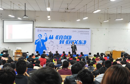 12月18日下午,由省委宣传部、省文联、省作协和省教育厅联合主办的“百名艺术家进校园”活动来到我院,著名作曲家、电视导演蔡海波为同学们带来《从〈亮剑〉到〈闯关东〉——优秀电视剧主题歌鉴赏》主题讲座。